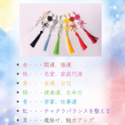 まゆみんの手づくり水引きお守りチャーム!それぞれの効果が色分けされているので自分にピッタリの色を選んでください。